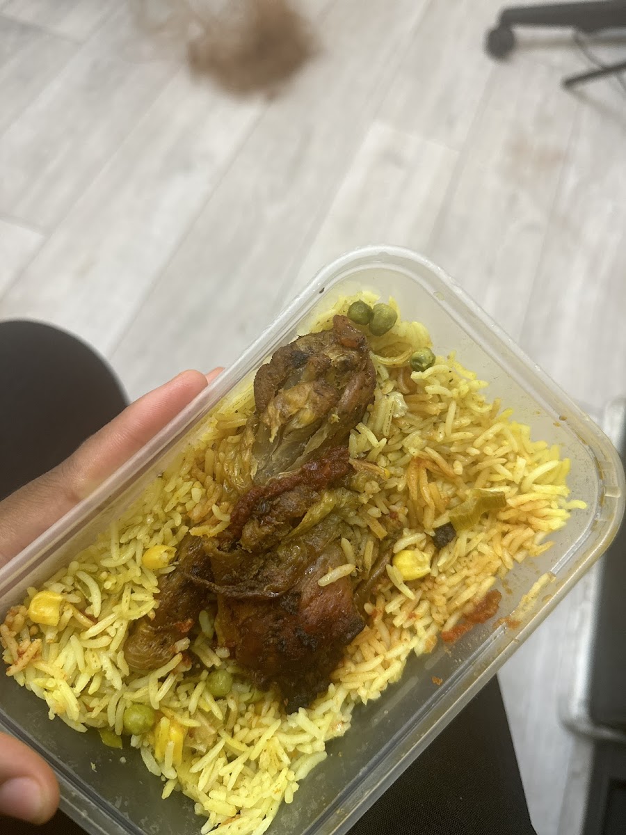 “Microwave food, the puff puff heated on the microwave like the meat pie(dry and no flavor at all), the curry goat and rice was nice but you can taste bland because of the microwave heating. Not great food, nice concept of the food but nothing special.”